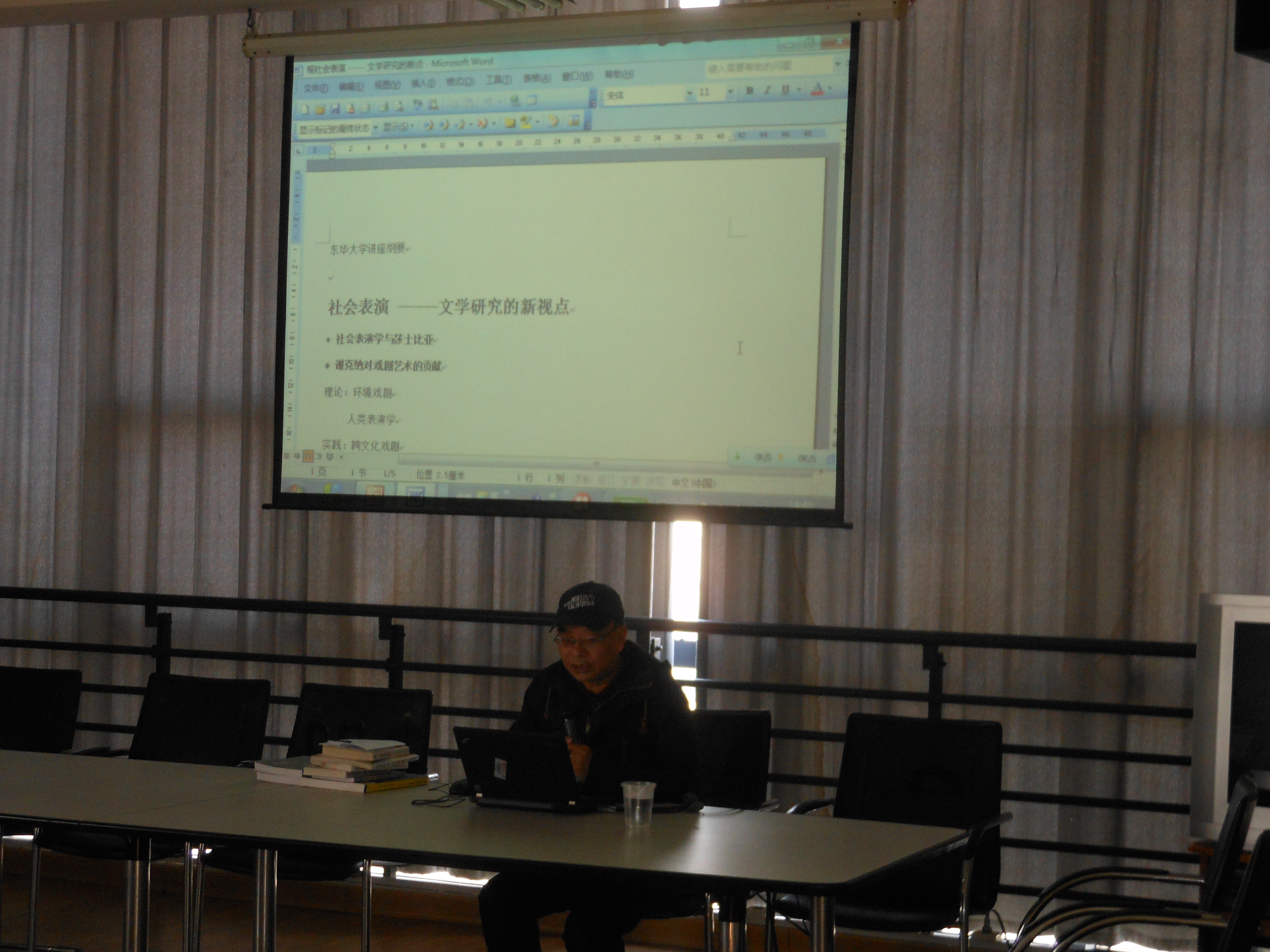 俞建村教授首先就现阶段文学研究出现的瓶颈做了简要阐述,提出了社会表演是文学研究的新视点这一重要观点,并详细介绍了社会表演的缘起、现状及趋势。随后对社会表演与文学作品的关系给出了社会即是舞台,文学即是人学的见解。俞教授还带来了许多文学著作与大家一起分享,通过列举具体的文学作品,生动形象地向在座师生阐释了六个社会表演与文学作品的研究视角:阶层与社会表演、宫廷就是一个剧场、前台与后台、自我与角色、脚本与即兴以及天性解放与社会表演。最后俞教授总结道,由于社会表演理论本身创立时间不长,社会表演运用到文学研究也不是很多;再加上社会表演与心理学,行为学及表演学等学科综合研究,这使得社会表演成为一个很有潜力的文学研究视点。