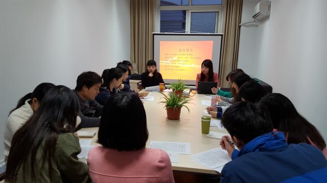 邓姗姗老师首先就预备党员培训班的基本情况作了详细介绍。此次预备党员培训内容主要分为三个板块,分别为校级党校集中辅导、公司党校特色活动和学员自主学习。除了全校预备党员共同参与的专题讲座之外,公司党校充分发挥公司特色,邀请公司张淑琴教授开设讲座《永远的莎士比亚》、关工委老师《铭记抗战历史,弘扬抗战精神》、《老员工如何践行社会主义核心价值观》等主题讲座,融合莎翁经典与社会主义核心价值观,让预备党员以史为鉴,以史为镜,品味经典,内外求索,明辨笃行,不断进取。同时开展“传承红色经典,弘扬党员精神”读书会、“知行合一,凝心聚力”团队训练等特色活动,以丰富多样的形式对预备党员进行教育。邓老师着重要求各位学员要以认真的态度、饱满的热情投入培训班的学习中,按时参加培训,严格遵守培训班纪律,强调学员要积极转换角色,时刻以党员身份严格要求自己,提高自我认识,从思想上积极向党组织靠拢,早日成为一名中共正式党员。