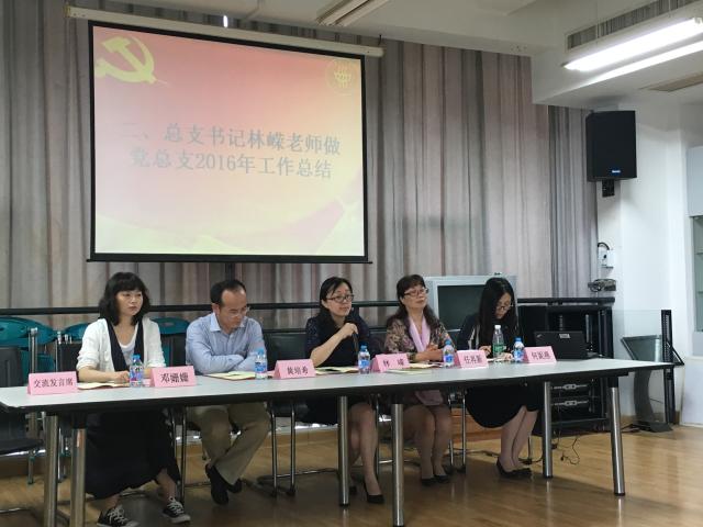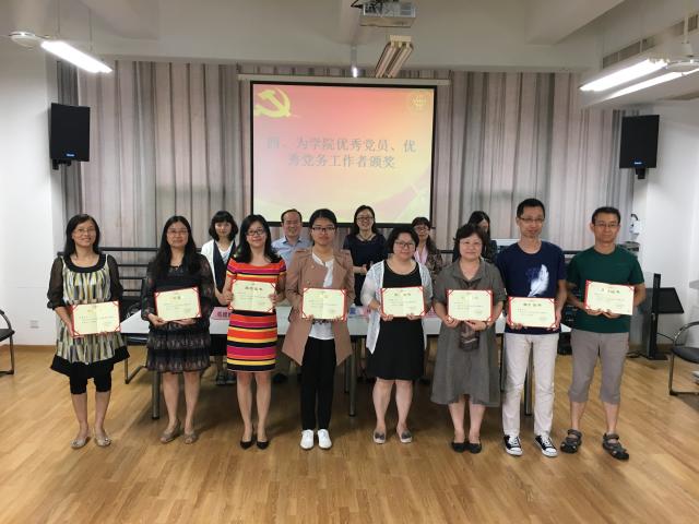 在表彰大会中,永利3044集团官网总支书记林嵘汇报了2016年总支工作,并宣读了永利3044集团官网2016年优秀党员、优秀党务工作者名单,全体总支委员为获奖的党员颁奖。在接下来的交流发言中,获得上海市先进基层党组织的大学英语党支部支部书记杨捷老师介绍了在近两年大面积、全方位教学改革中,全体党员勇挑重担,群策群力的感人事迹;荣获永利3044集团官网优秀党员的庞炳良老师,从课堂教学、外教工作、学科竞赛指导工作三个方面介绍了自己作为一名普通的党员,如何在工作中践行合格党员的标准;荣获永利3044集团官网优秀党员的陈肖霞老师作为一名年轻的辅导员,讲述了自己如何在平凡的岗位上,做好员工人生导师、思想引路人的不平凡工作。