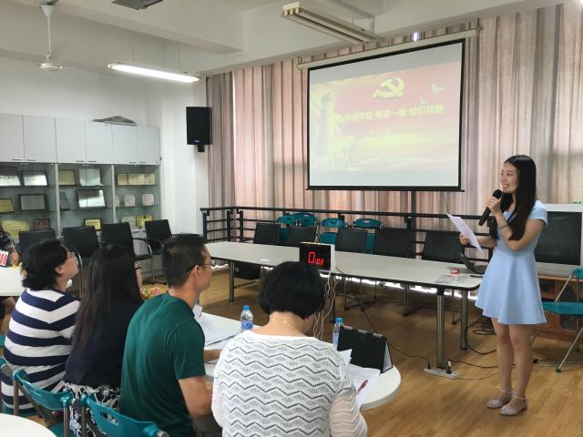 在接下来的知识竞赛中,由大学英语党支部、英语系党支部、日语系党支部、公外研及辅办党支部组成的4支队伍展开了激烈的角逐,通过必答题、抢答题,听革命经典歌曲、对党的历史的生动形象描述等形式,以赛促学,寓教于乐,让所有参赛党员和现场的老师们在热烈的气氛中,加深了对党章党史党规的认识。公司党总支书记林嵘老师宣布了比赛结果,并强调“两学一做”教育活动基础在学,关键在做,希望全体党员在日常工作中体现党员先锋模范带头作用,提升永利3044集团官网全体党员政治素养,争做合格党员。