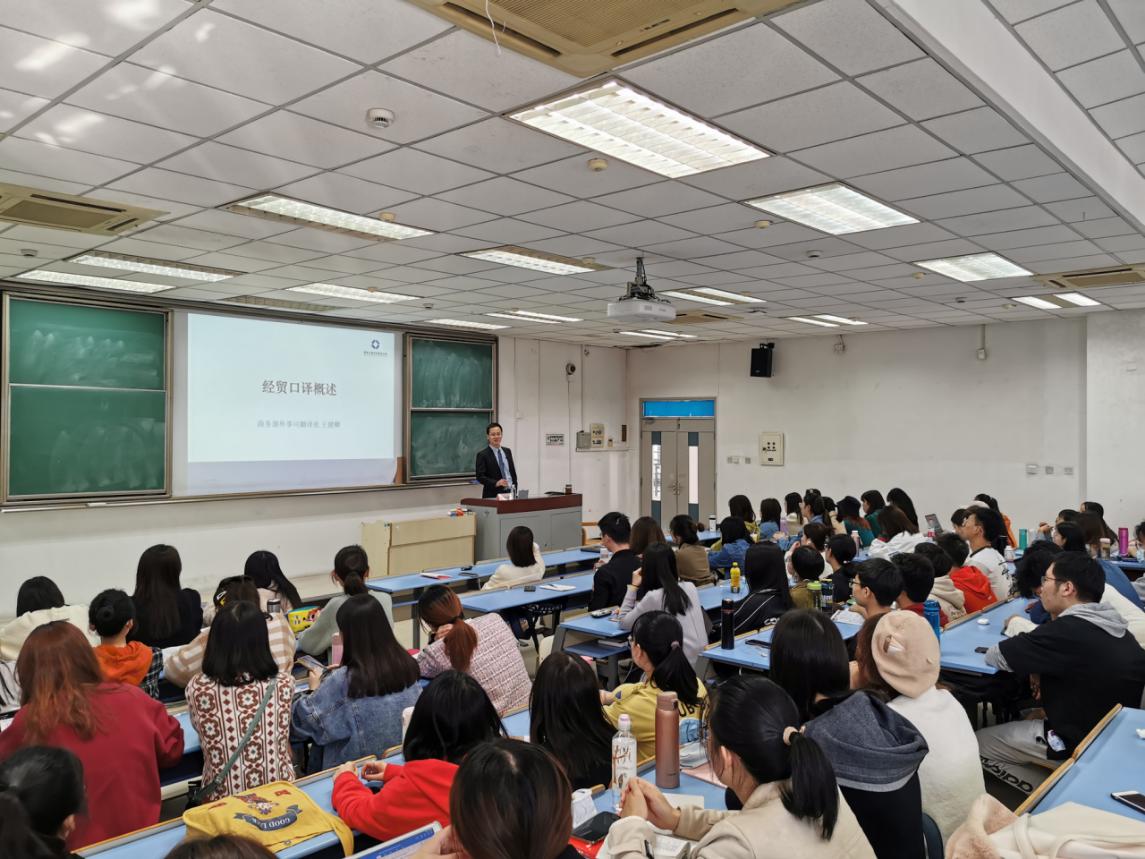 11月3日,永利3044集团官网英语系00级优秀员工、现任商务部外事司翻译处副处长王健卿先生应邀回到母校,为英语系在校生上了一堂生动详实的“经贸口译概述”大课。他结合个人求学、工作经历,以诙谐幽默的授课风格与在场学子们分享了外事口译的基本概况、提高汉英口译水平的学习方法、字斟句酌的经验秘籍等,并枚举了大量工作中的口译实例,手把手带领员工现场体会外事口译技巧。