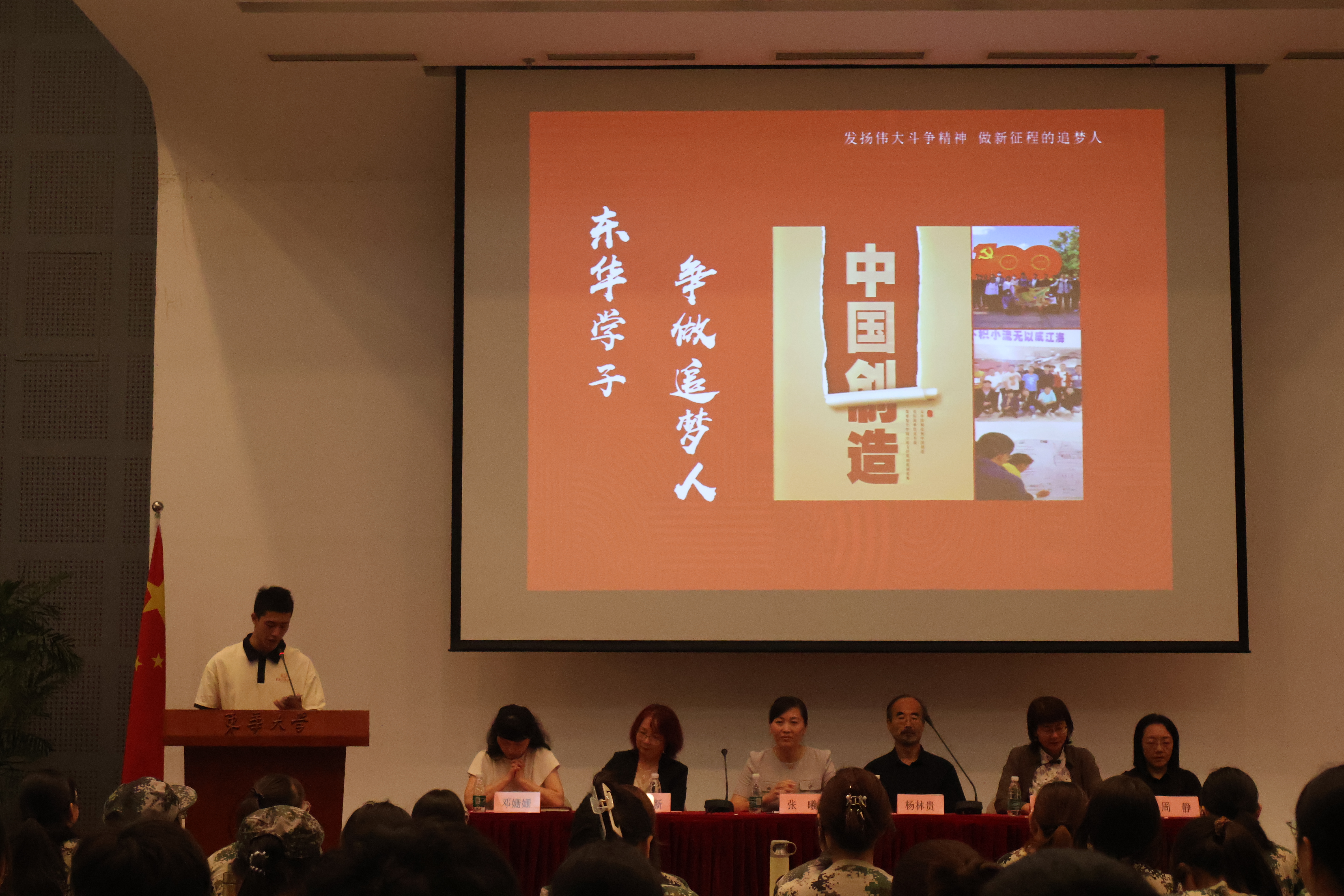 会上,永利3044集团官网“学习进行时”员工理论宣讲团吴再奕为新生带来了振奋精神的“开学第一课”《发扬伟大斗争精神,做新征程的追梦人》。革命烈士的英雄事迹、先进模范的忘我奉献、东华人的奋进日夜,他都一一道来,他以青年人的视角呼吁广大新生,勇担实现中华民族伟大复兴梦的重任。