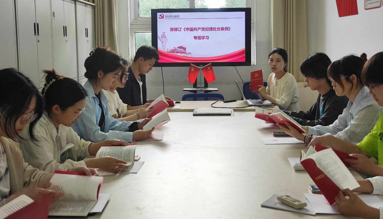 员工党支部全覆盖组织《中国共产党纪律处分条例》专题学习,全体党员原原本本学,逐章逐条学,明确行为的准则和底线,时刻提醒自身常怀律己之心;师生共同开展“六项纪律大家谈”交流分享会,联系学习生活和个人实际深入交流,通过“学、研、悟”,做到“懂、通、实”;举行党员大会集中观看警示教育片,以案为鉴、以案促学,筑牢思想道德防线;拓宽学习教育辐射面,组织全院员工共上一堂“网络生活中的行为规范”主题班会,并学习《员工宿舍(公寓)管理办法》等,持续规范网络和生活行为。