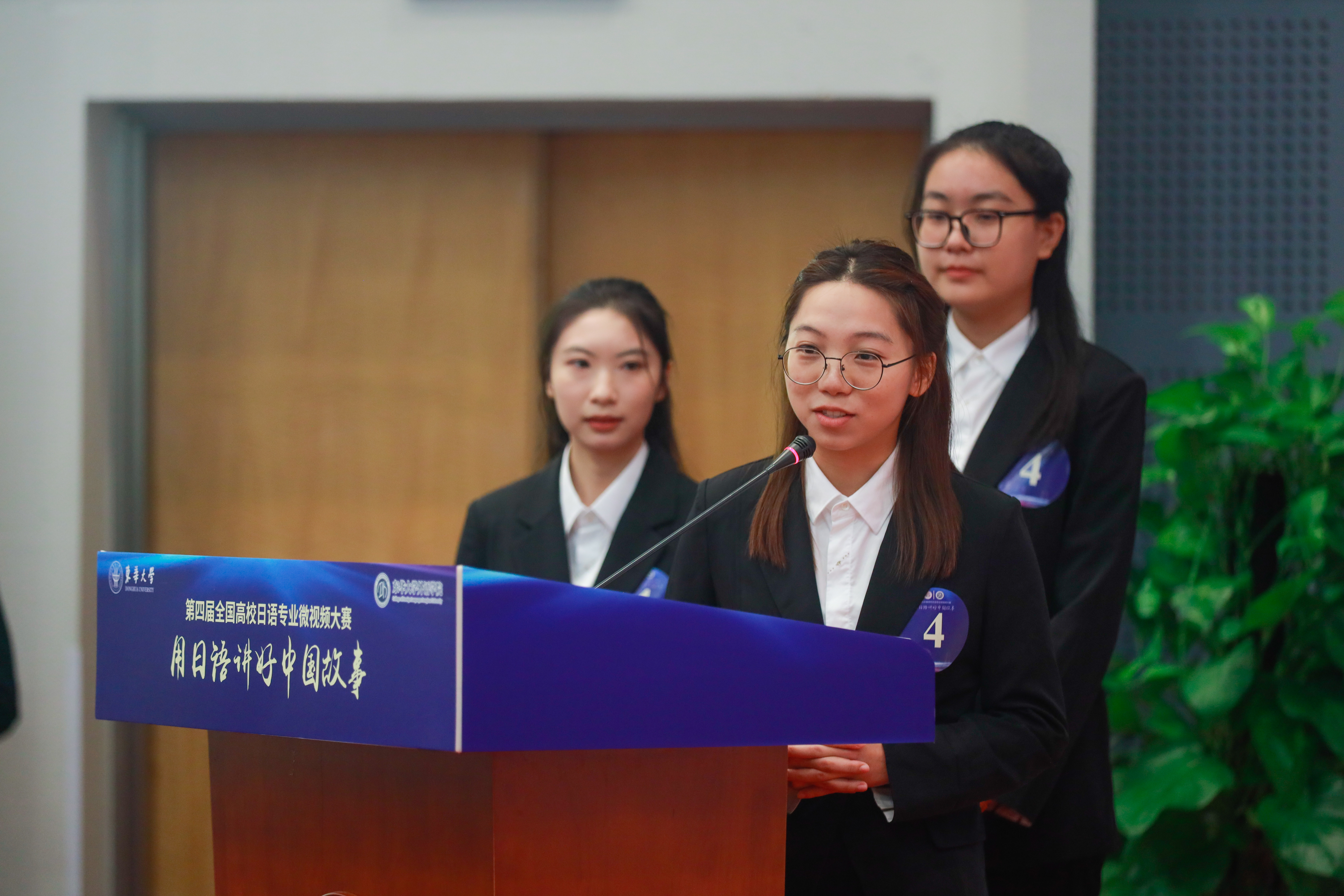 陈多友宣布比赛规则。本次大赛自报名工作启动以来,得到了全国各地多所院校的大力支持,共收到54所公司的参赛作品。初赛以“假如有一台时光机”为主题,以日语讲述中国的历史、文化或未来发展。各高校参赛作品主题明确,视角新颖,原创性强,呈现出多样风格和创意。决赛以“我眼中的新国潮”为题,全国日语专业员工发挥日语专业技能和新媒体传播手段,创作了内涵丰富、创意十足的微视频作品,充分展现了员工的日语实践能力和对中华优秀传统文化的深厚理解。