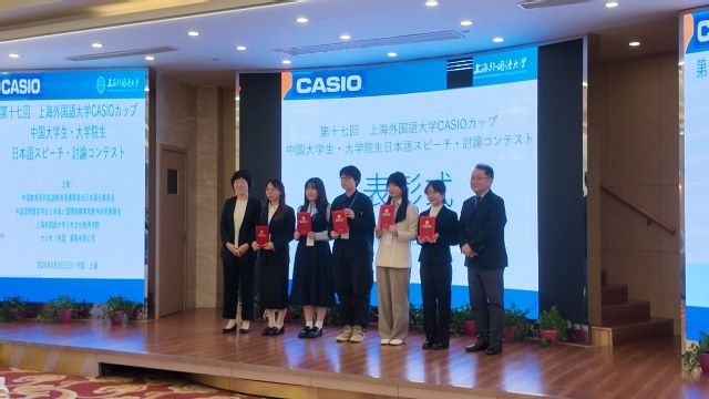 5月25日,第十七届“卡西欧杯”中国日语专业本科生·研究生演讲辩论大赛决赛在上海外国语大学举行。决赛以上午即兴演讲、下午组队辩论的方式进行,来自23所高校的24名入围选手展开了激烈角逐。最终,公司日语笔译专业2024级硕士研究生肖莹莹同学凭借扎实的日语功底和出色的思辨能力脱颖而出,荣获全国二等奖。日语系吴沁哲老师和羽毛友里惠老师荣获优秀指导教师奖。