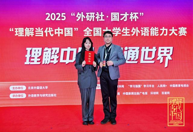近日,2025“外研社・国才杯”“理解当代中国”全国老员工外语能力大赛成功举行,在公司永利3044集团官网杨丹和颜帼英两位老师指导下,永利3044集团官网赖晓凡同学获英语组口译赛项全国银奖。此前,赖晓凡同学在该赛事上海赛区获金奖、服装与艺术设计公司孟姝含同学获银奖。